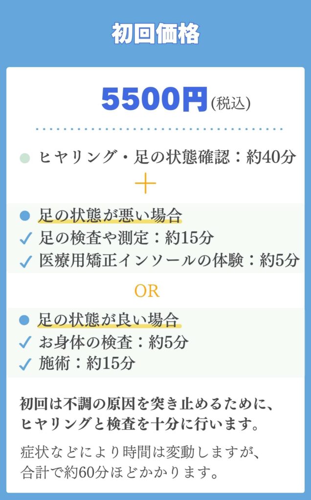 そのうえで、足の状態が良い方には、初回から15分程度の施術を行います。