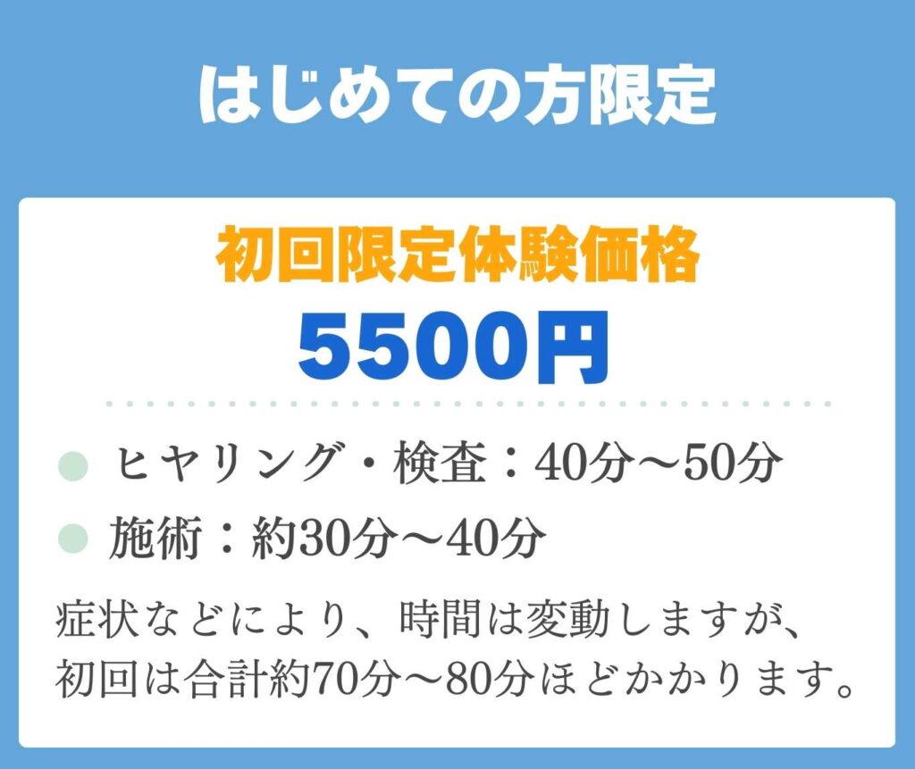 ぎっくり腰など急性期で痛みが強い場合は、初回から施術をメインで行います。